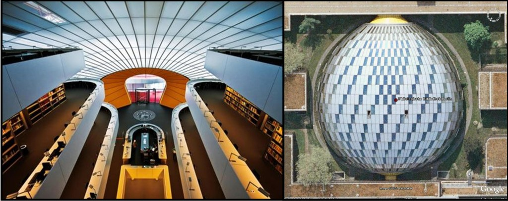 Designed by Foster and Partners as part of the campus renovation, the 68,000-square-foot Philology Library houses some 700,000 books and consolidated 11 departmental libraries that had been scattered throughout the campus previously. Part of the Freie Universität Berlin Library, which comprises the University Library and around 40 departmental libraries with a total holdings of around 8 million printed items, 38,000 e-journals, 400,000 e-books, and 1300 databases, it was completed in 2005 and became an architectural jewel for both the University and the City of Berlin itself.